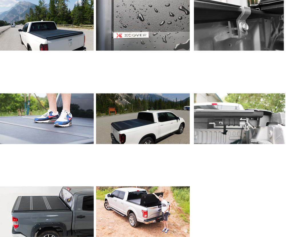 Xcover Low Profile Hard fold Tonneau Cover mounts to the inside of the truck bed rail, sit with the top of the bed rail caps, providing a low-profile and stylish look.